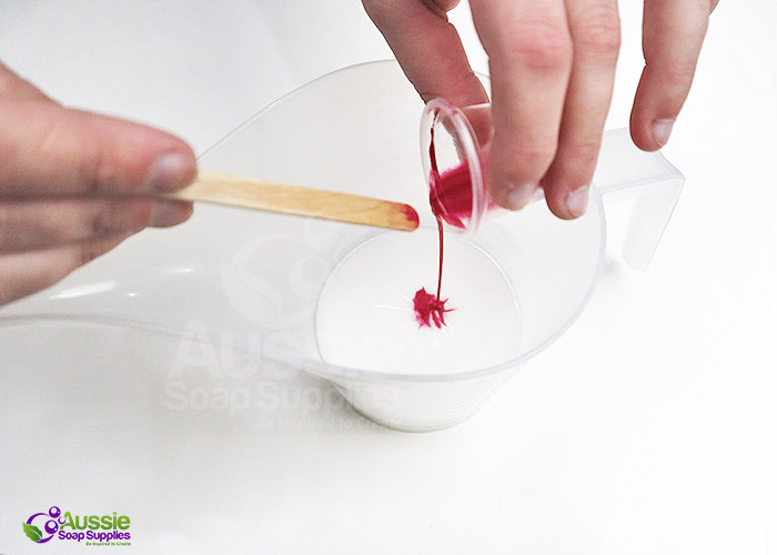 Melt each batch of soap base in the microwave and pour a colour solution into each jug