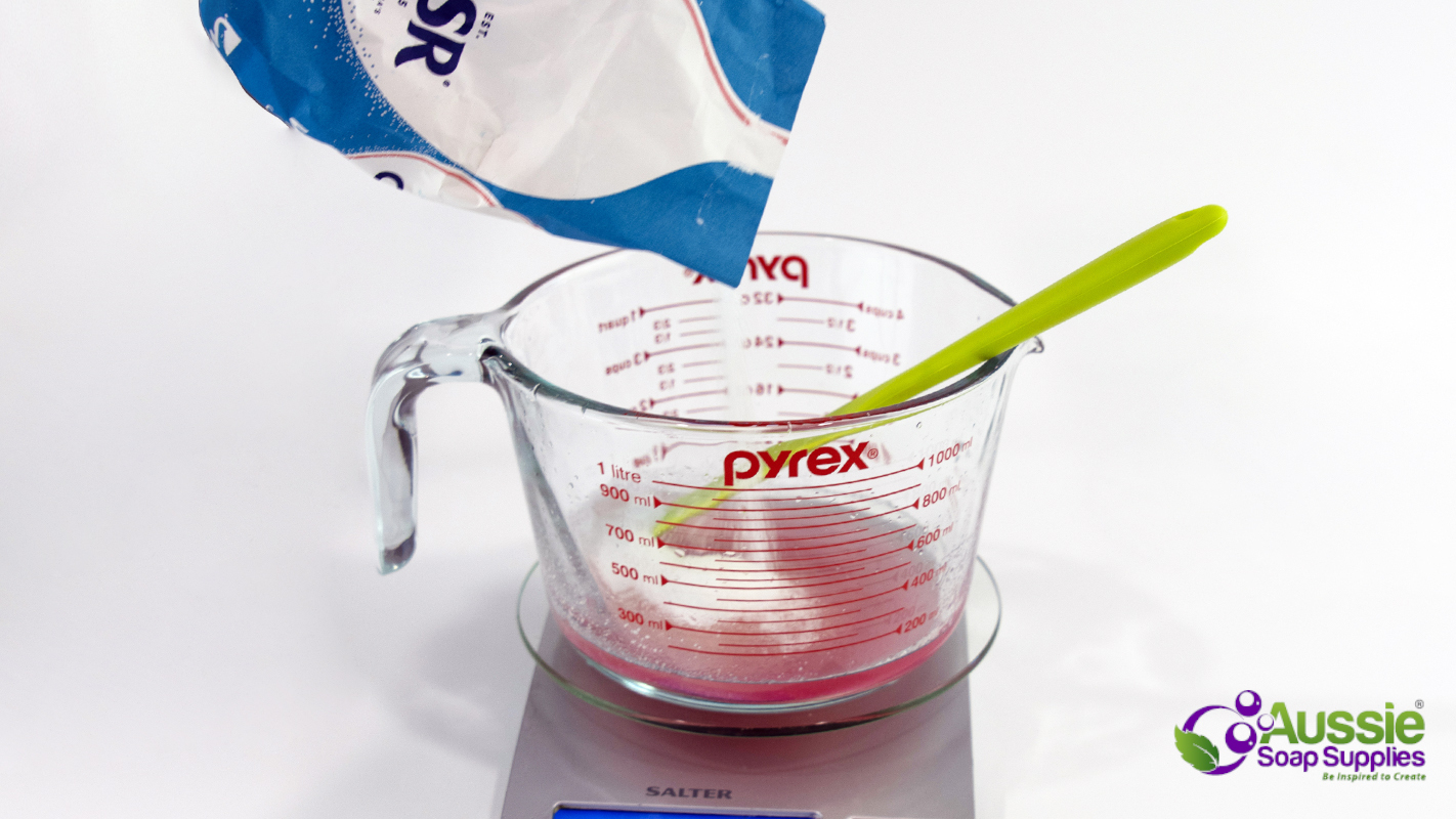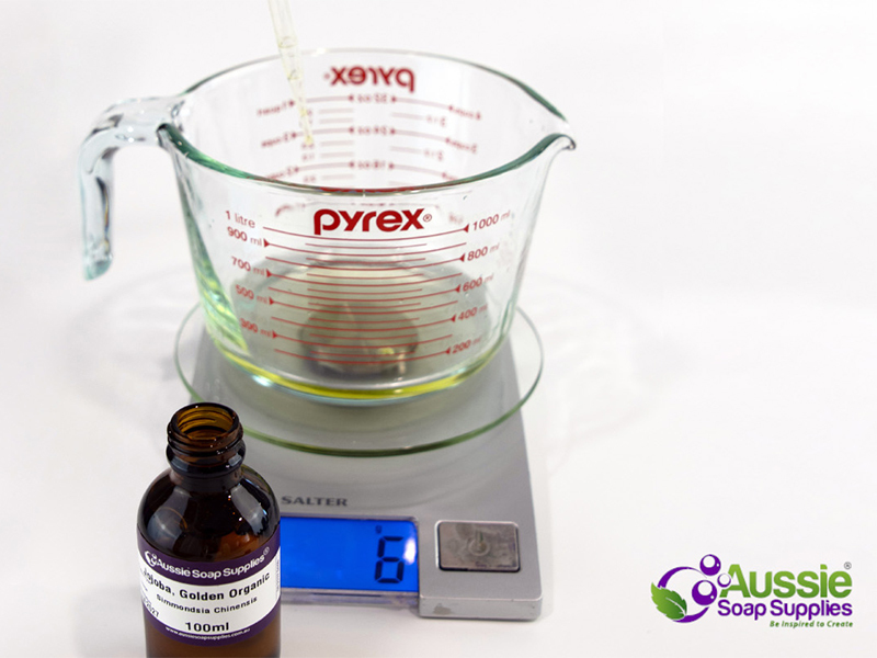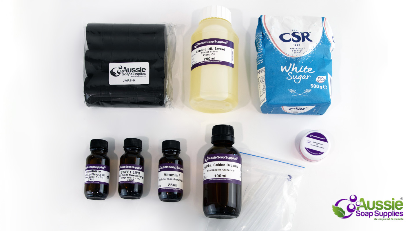 In a mixing jug, combine Sweet Almond Oil, Jojoba Oil, Vitamin E, Strawberry Natural Lip Flavour and Sweet Lips Sweetener. Don't forget to tare your scales between each ingredient to ensure accurate measuring.